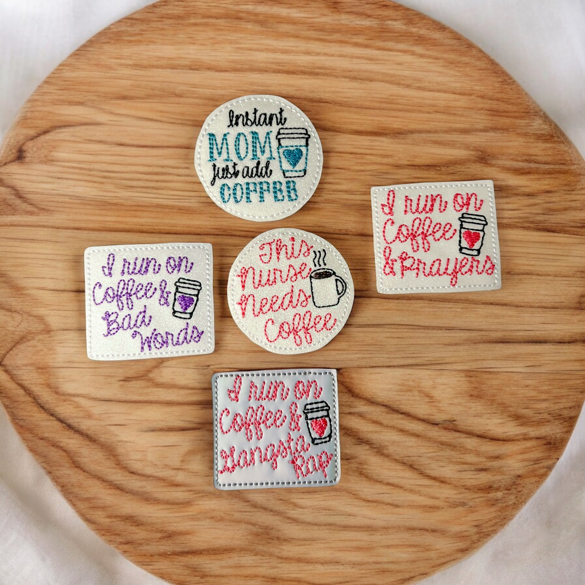 Vinyl I Run On Coffee Badge Topper + Reel