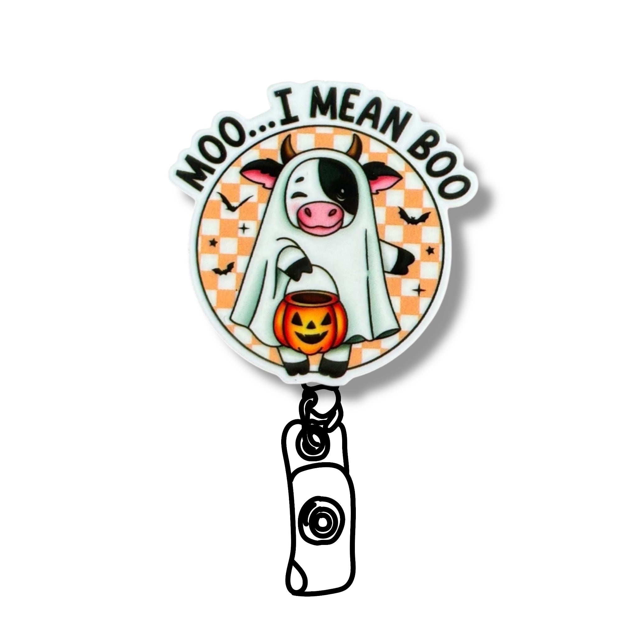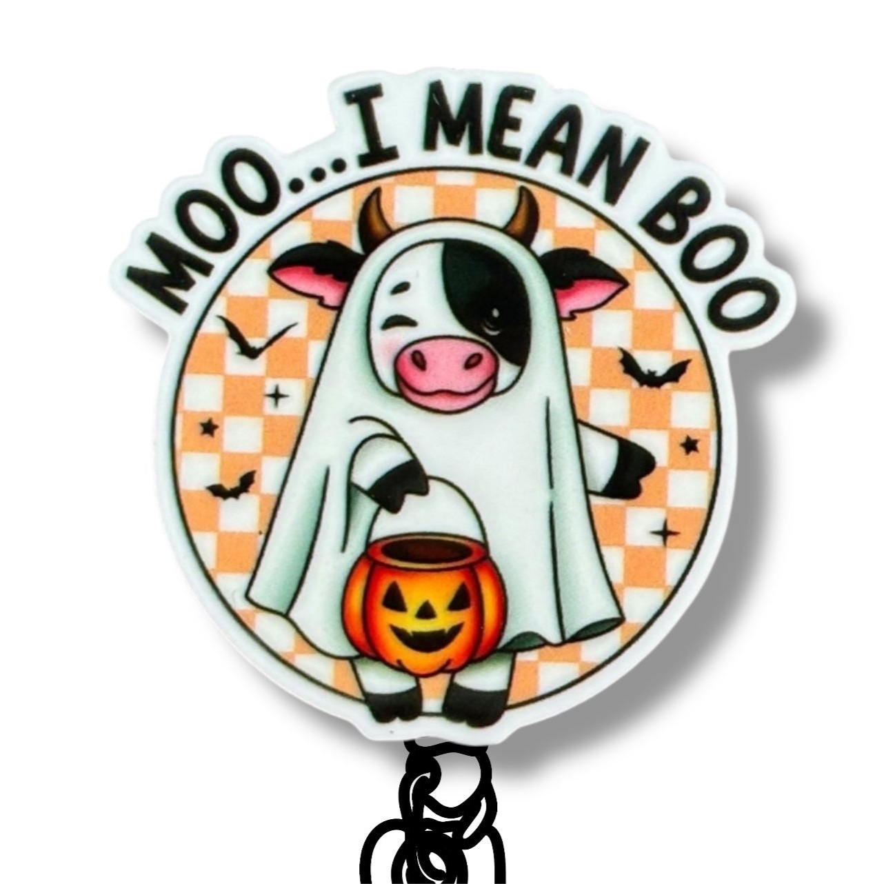 Acrylic Halloween Cow Badge Topper + Reel