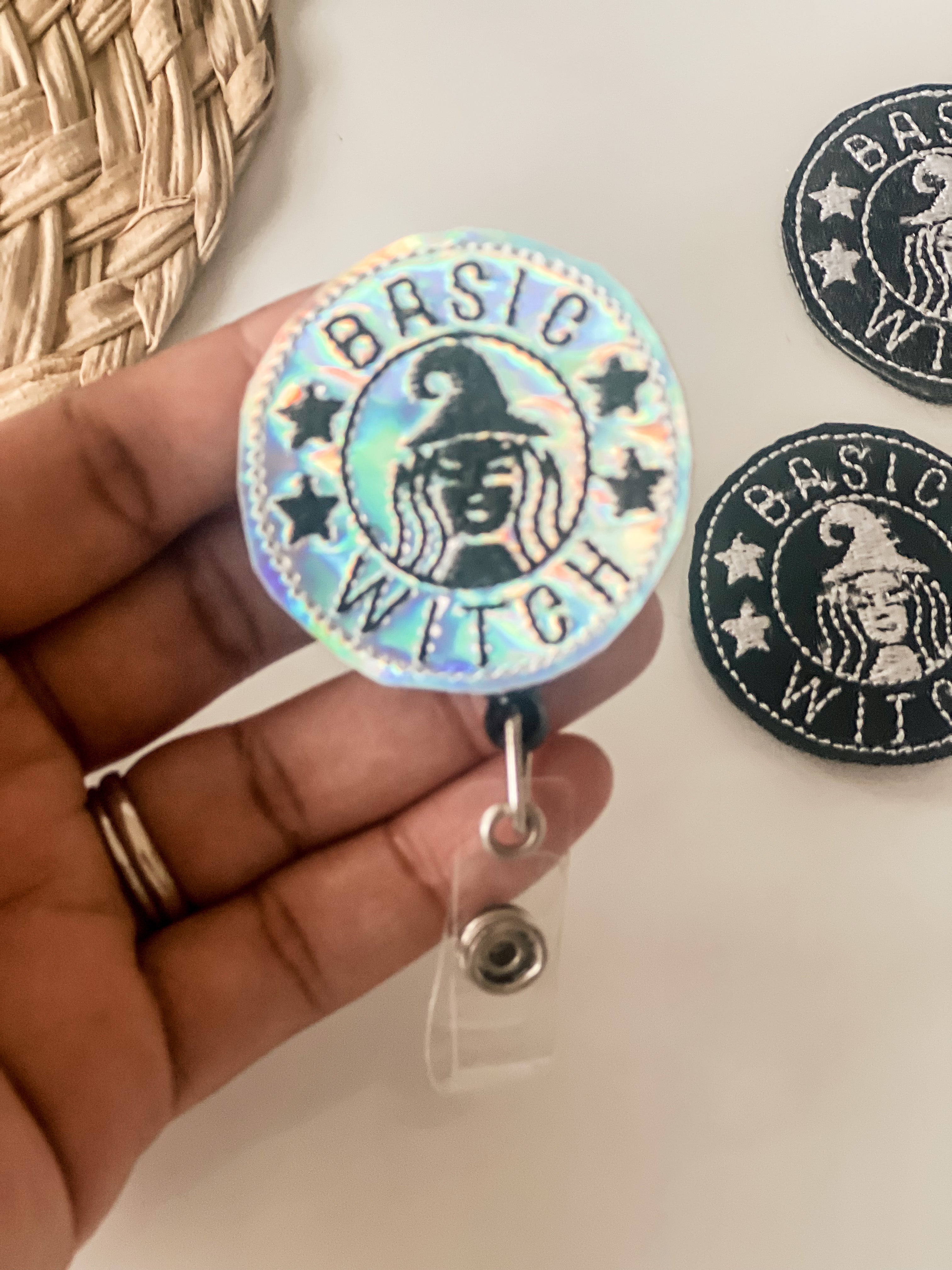 Vinyl Basic Witch White Black Badge Topper + Reel