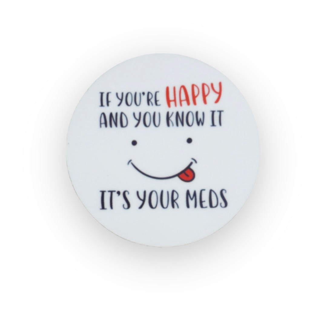 Acrylic If You’re Happy and You Know It’s Your Meds Badge Topper + Reel