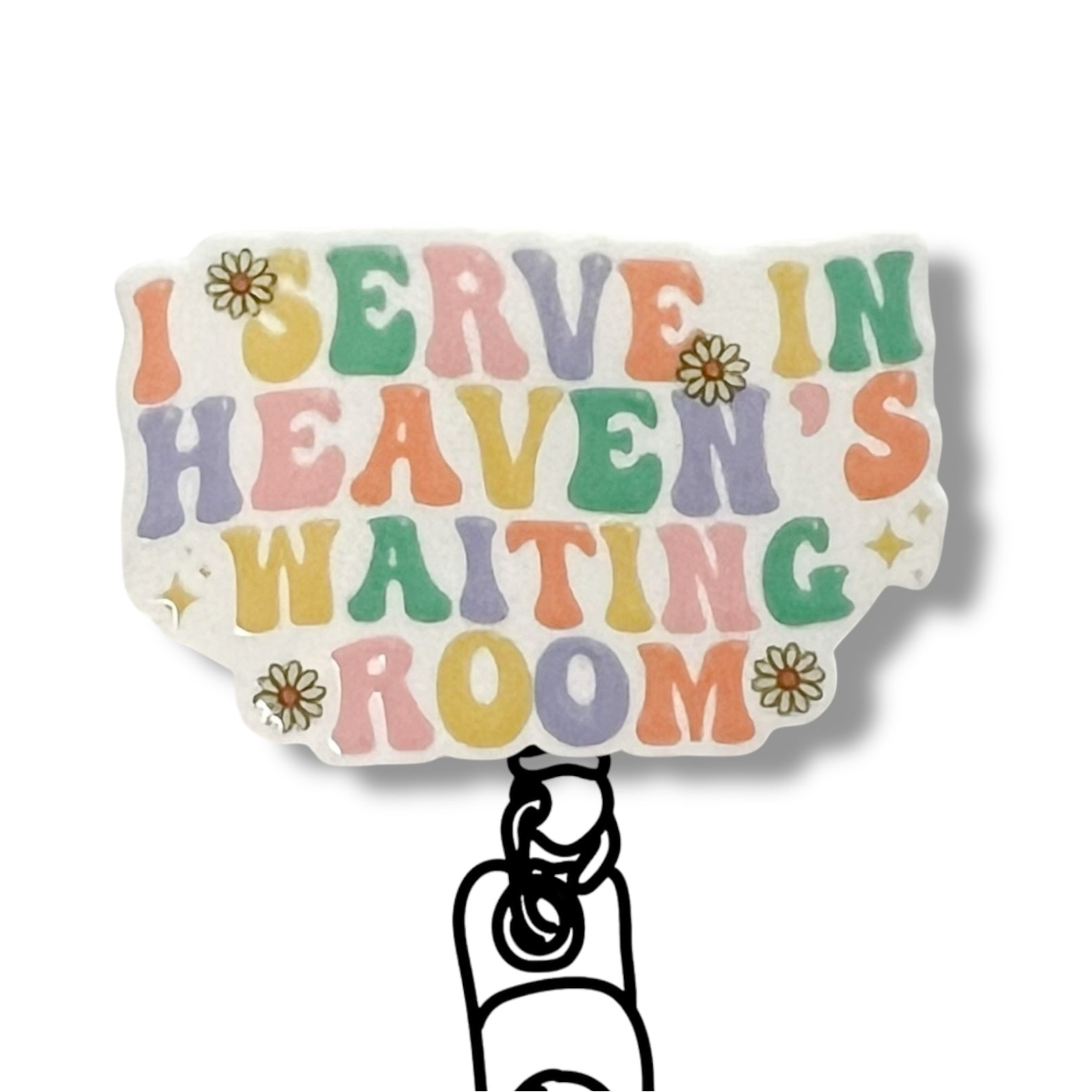 Acrylic I Serve In Heaven's Waiting Room Badge Topper + Reel