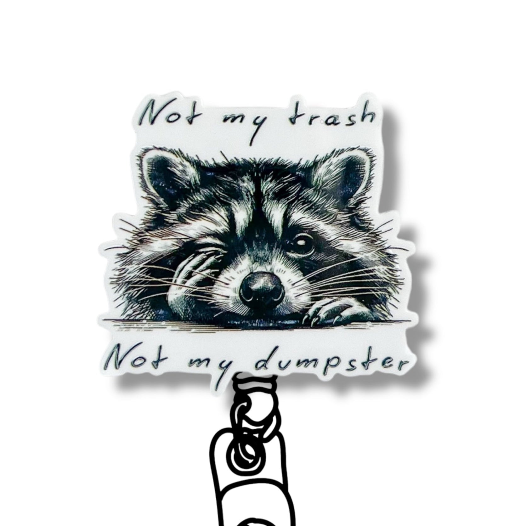 Acrylic Not My Trash Raccoon Badge Topper + Reel