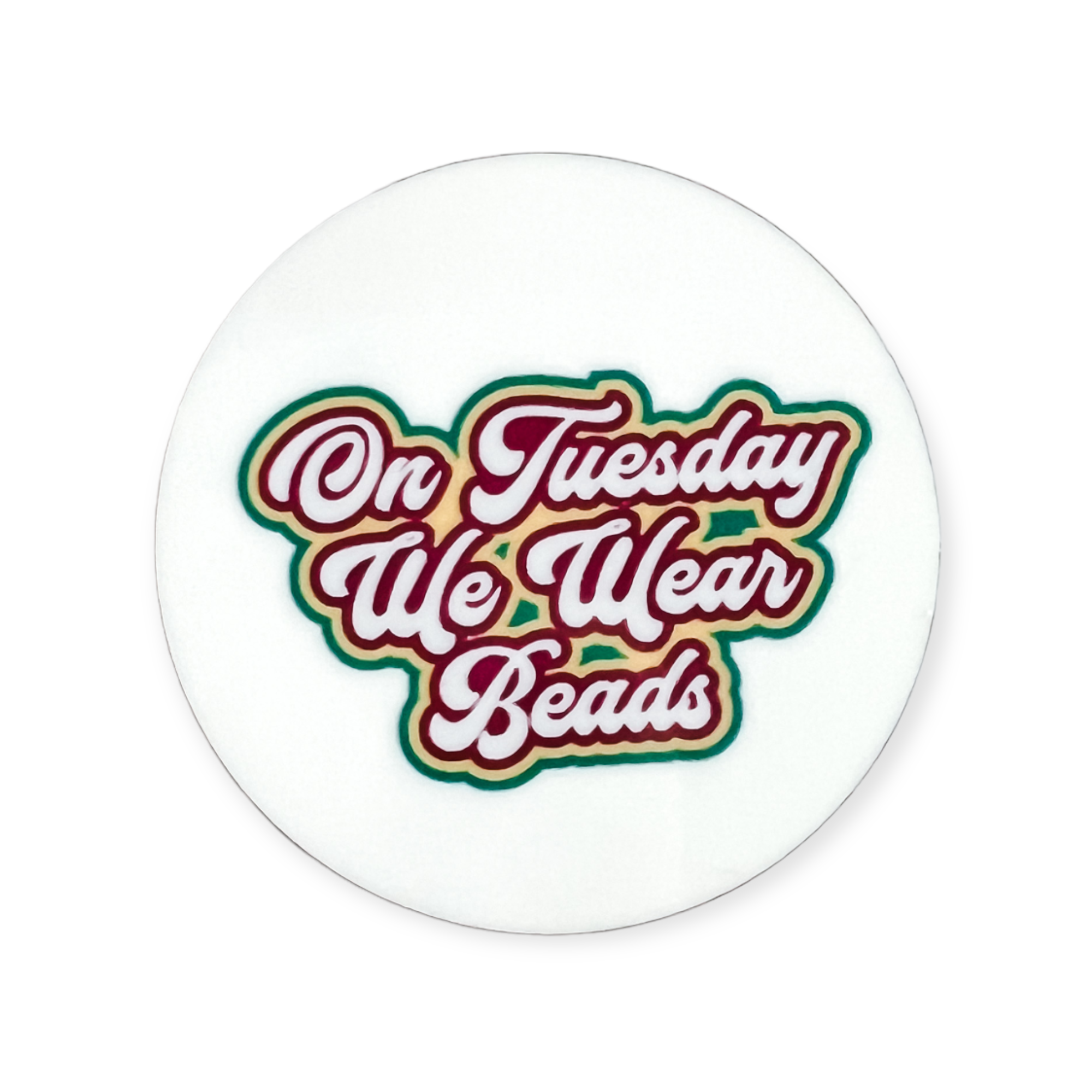 Acrylic On Wednesdays We Wear Beads Mardi Gras Badge Topper + Reel