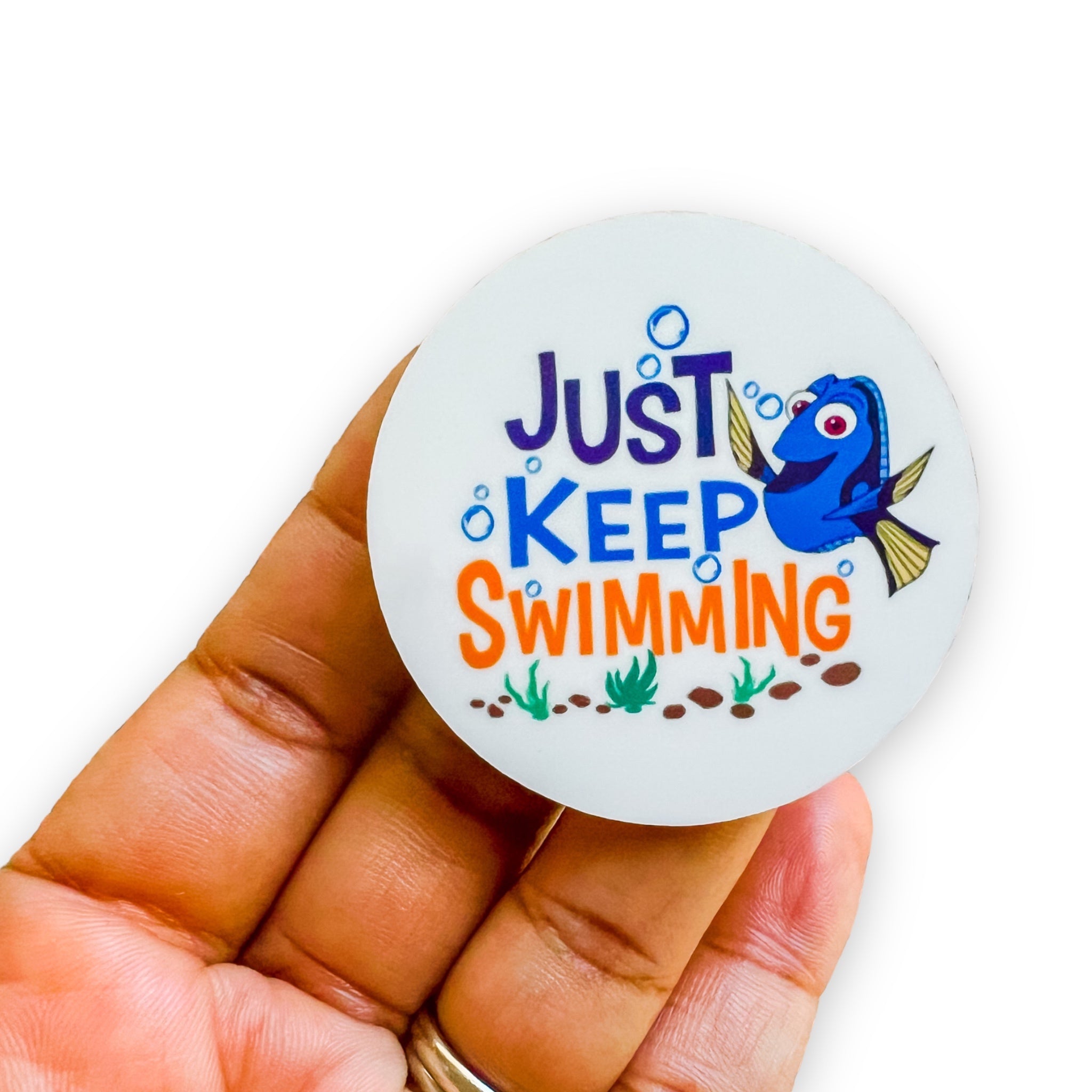 Acrylic Just Keep Swimming Badge Topper + Reel