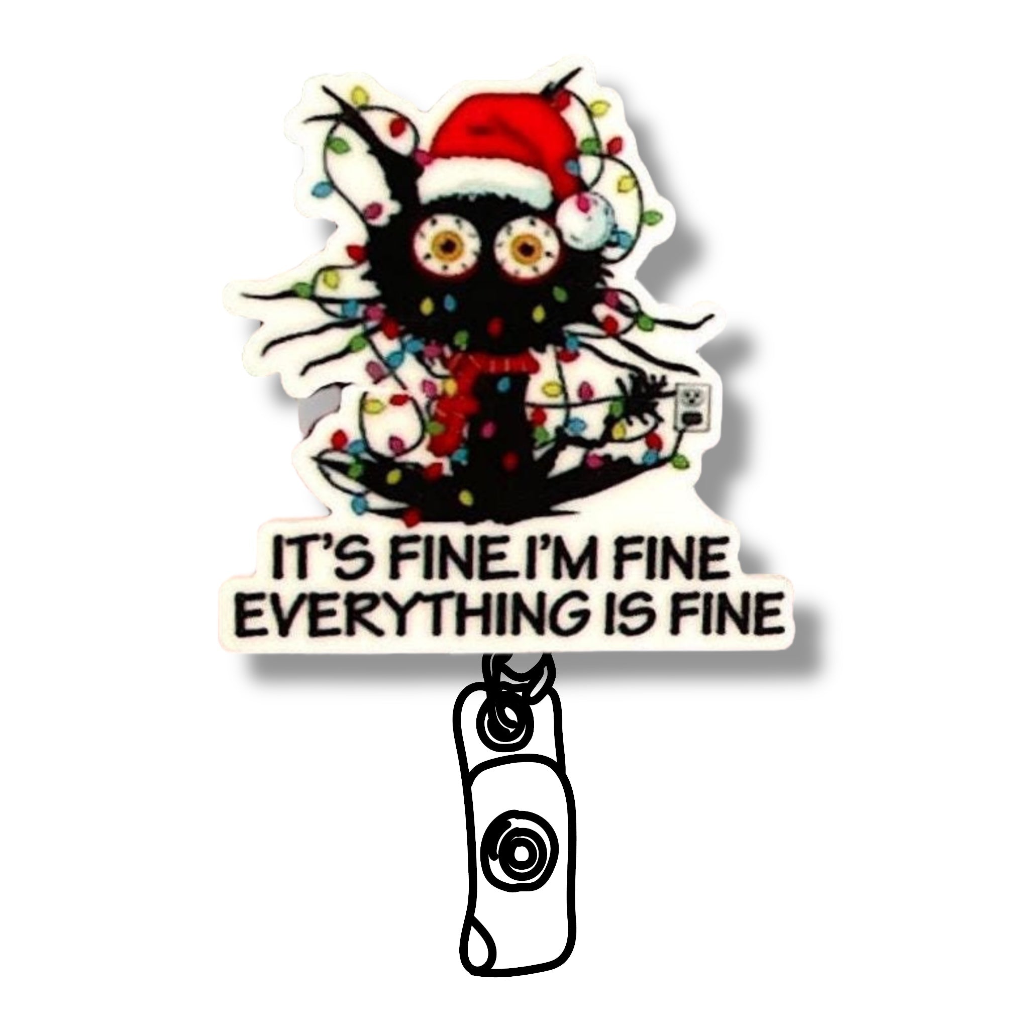 Acrylic Everything Is Fine Cat Badge Topper + Reel