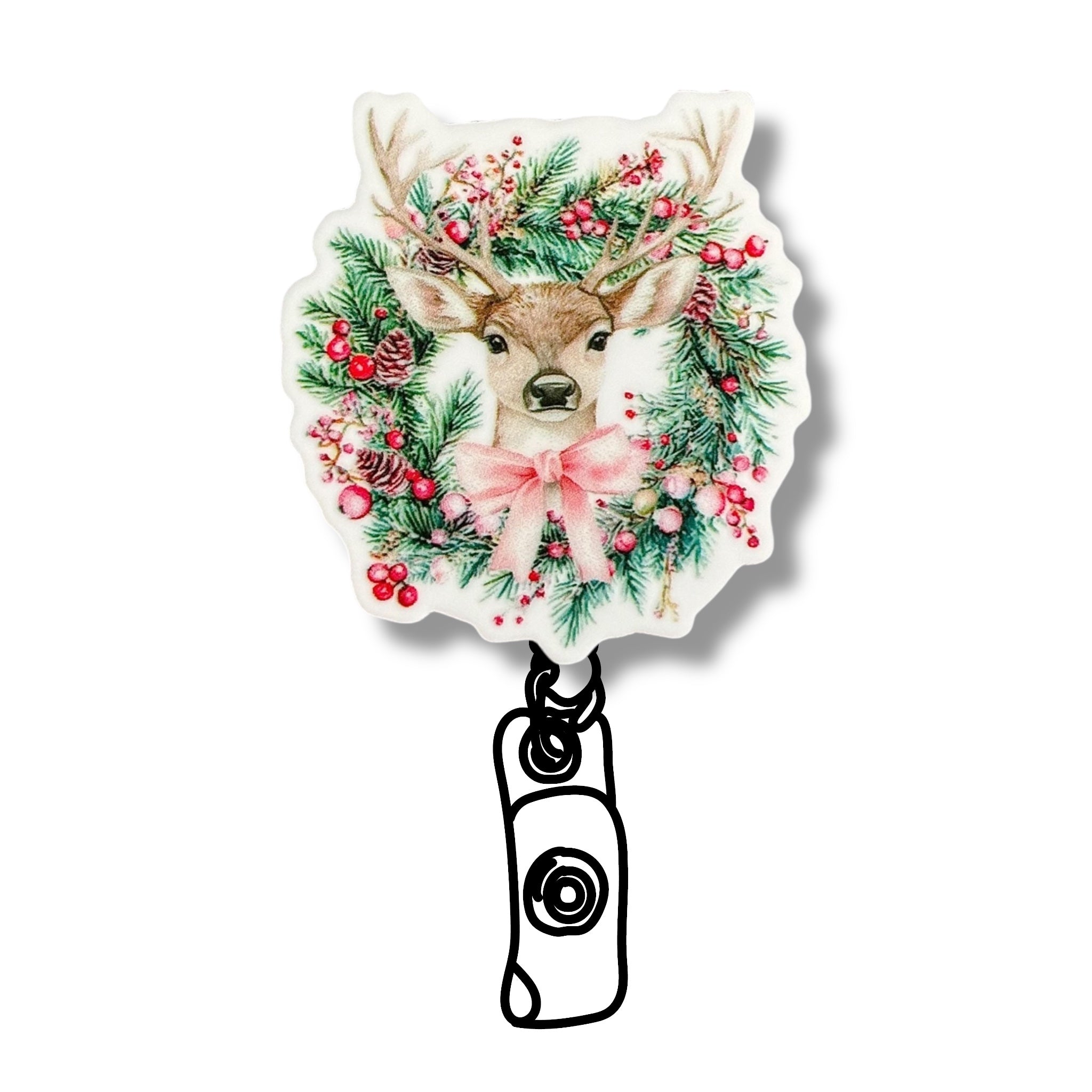 Acrylic Christmas Deer Badge Topper + Reel