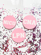 Acrylic Pink Varsity Specialty Nurse Badge Topper + Reel