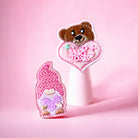 Vinyl Bear Shaker \\ Gnome with Heart Badge Topper + Reel