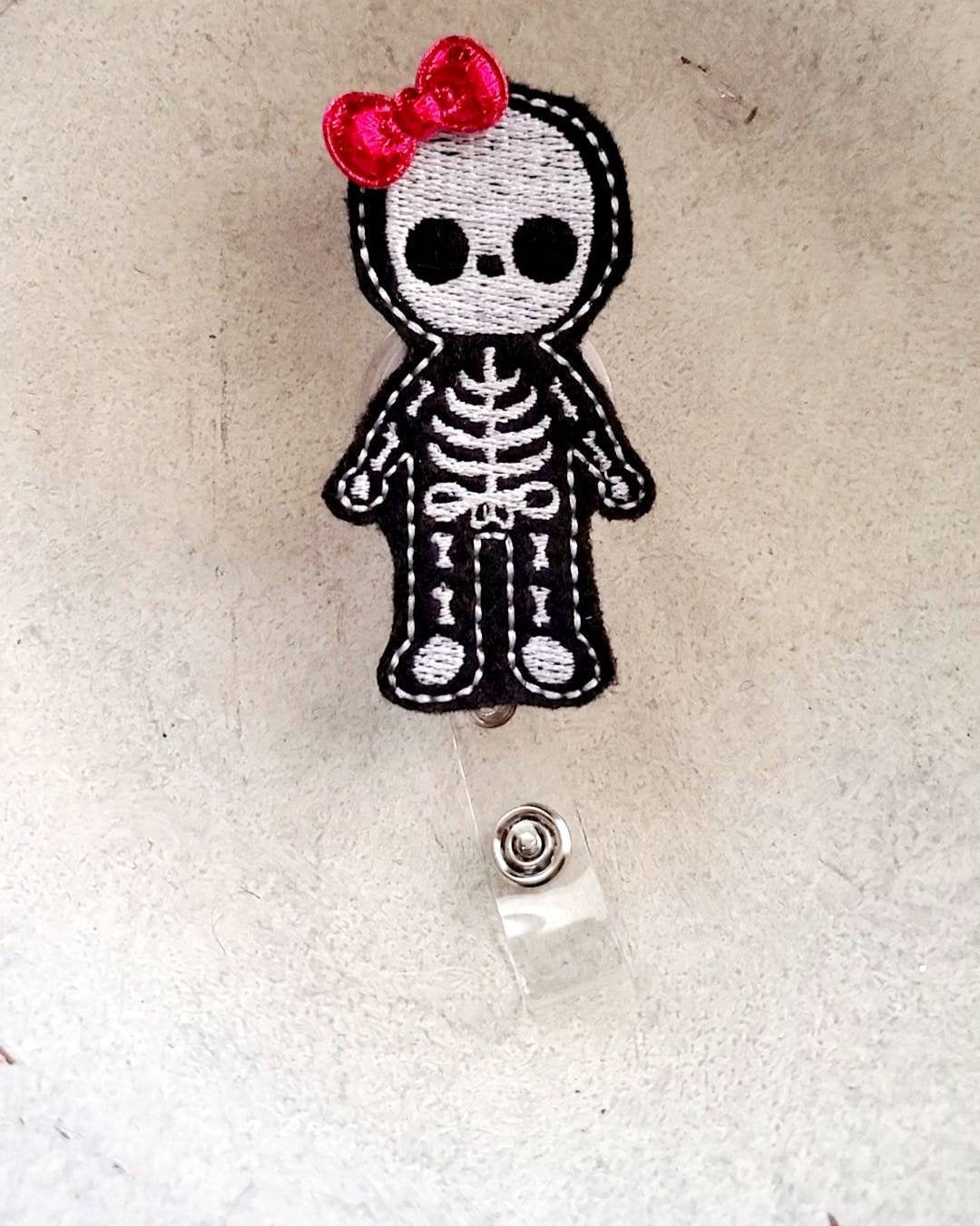 Felt Xray Skeleton Badge Topper + Reel